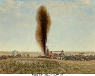 Hermann’s artistic style combined classical realism with emotional depth and narrative character. He became widely known for his ability to portray not only the physical likeness of his subjects, but also their personality, social presence, and inner temperament. Over the course of a seventy-five-year career, he completed more than one thousand portraits, murals, and landscapes, many of which remain in private collections and public institutions throughout Texas, Louisiana, and Oklahoma. Emil Hermann continued painting well into his later years and passed away in his Wichita Falls studio in 1966 at the age of ninety-five.